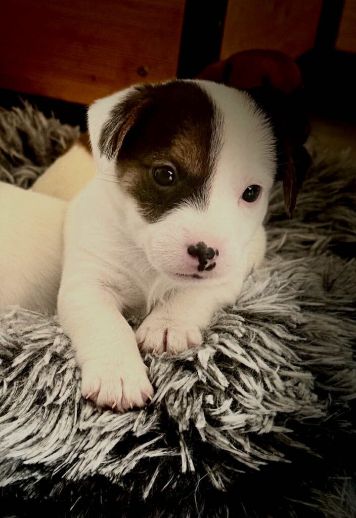 Très joli masque pour ce jack Russel Terrier tricolore poils lisse . Papa Nasco et maman Plume.