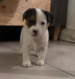 Très joli masque pour ce jack Russel Terrier tricolore poils lisse . Papa Nasco et maman Plume.